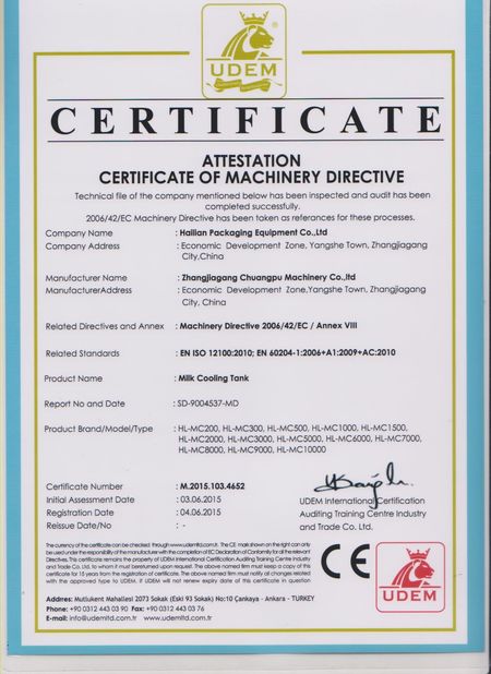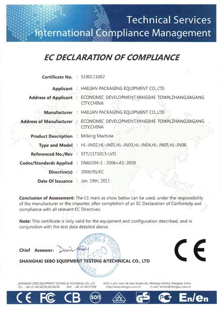 1. Onze Melkende Machine is overgegaane Ce-certifictae geweest.